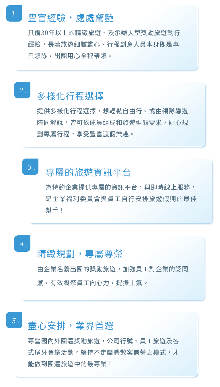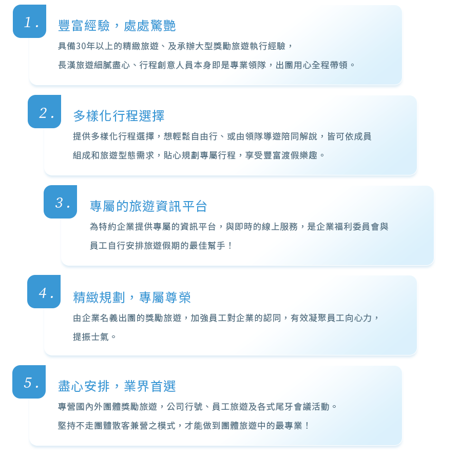 提供企業專屬行程訂製,滿足企業每次旅程目的,提升同仁對企業有感體驗
