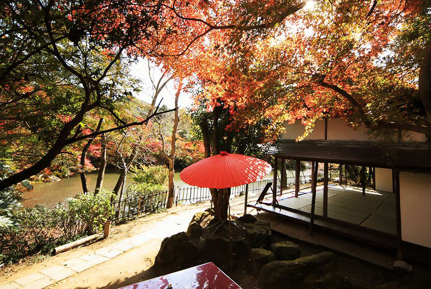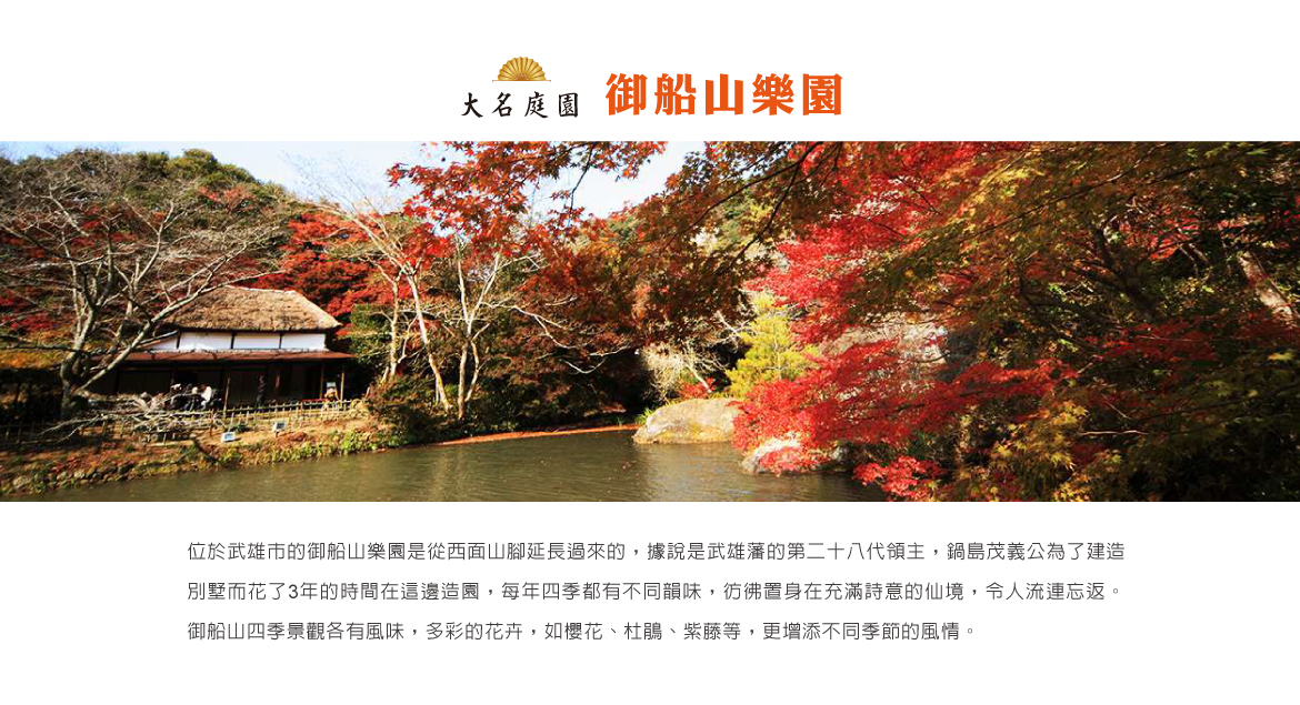 【慧洲園】是一座位於佐賀縣武雄市的精緻池泉回遊式日本庭園,由「昭和的小堀遠州」之稱的名師中根金作設計,面積約3,000坪。園區借景御船山,結合瀑布、茶園與奇石,四季景色迥異,結合陽光美術館與御船茶屋,是結合藝術、自然與品茗的熱門秘境。